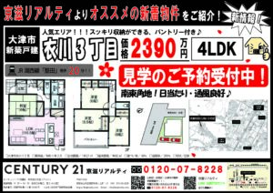 ≪新着情報≫大津市衣川3丁目 新築戸建 2390万円!